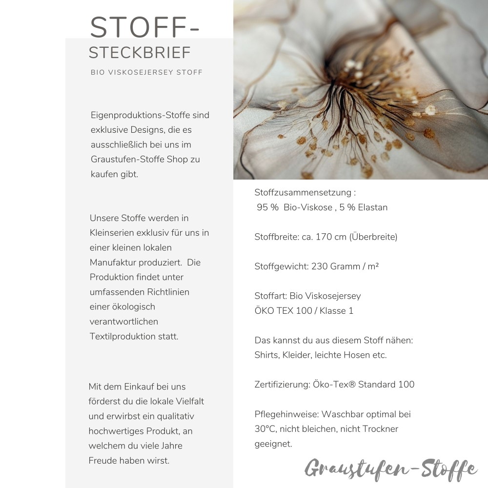 Dieser besondere Stoff ist für alle Näherinnen gedacht, die Wert auf Qualität und Einzigartigkeit legen. Mit diesem Viskose Jersey kannst du deine kreativen Ideen zum Leben erwecken und ein individuelles Nähwerk erschaffen, das es so kein zweites Mal gibt. Der weich fallende Stoff mit einem stabilen Gewicht von 230 g/m² sorgt dafür, dass deine Projekte sowohl elegant als auch langlebig sind – perfekt für Sommerkleider, luftige Blusen oder einzigartige Jumpsuits.