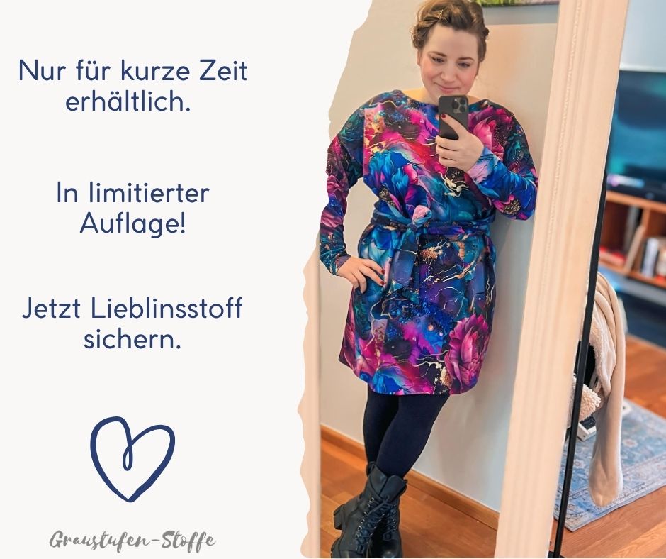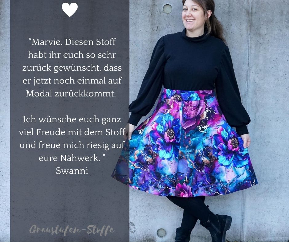 Unser fließender Modal Sweat in Bioqualität. Dieses einzigartige Design punktet mit leuchtenden Farben, der jeden Schnitt zum absoluten Hingucker macht. Mit einer Breite von ca. 165 cm und der weichen, elastischen Textur eignet sich der Stoff perfekt für kreative Nähprojekte. Jedes Stück aus der "Swanni Kollektion" wird in kleinen Serien digital mit umweltfreundlichen Biofarben hergestellt. Verwöhne dich sich mit einem Stoff, der nicht nur wunderbar aussieht, sondern sich auch fantastisch anfühlt. Mache jeden Tag zu etwas Besonderem – setze auf Qualität und Stil!