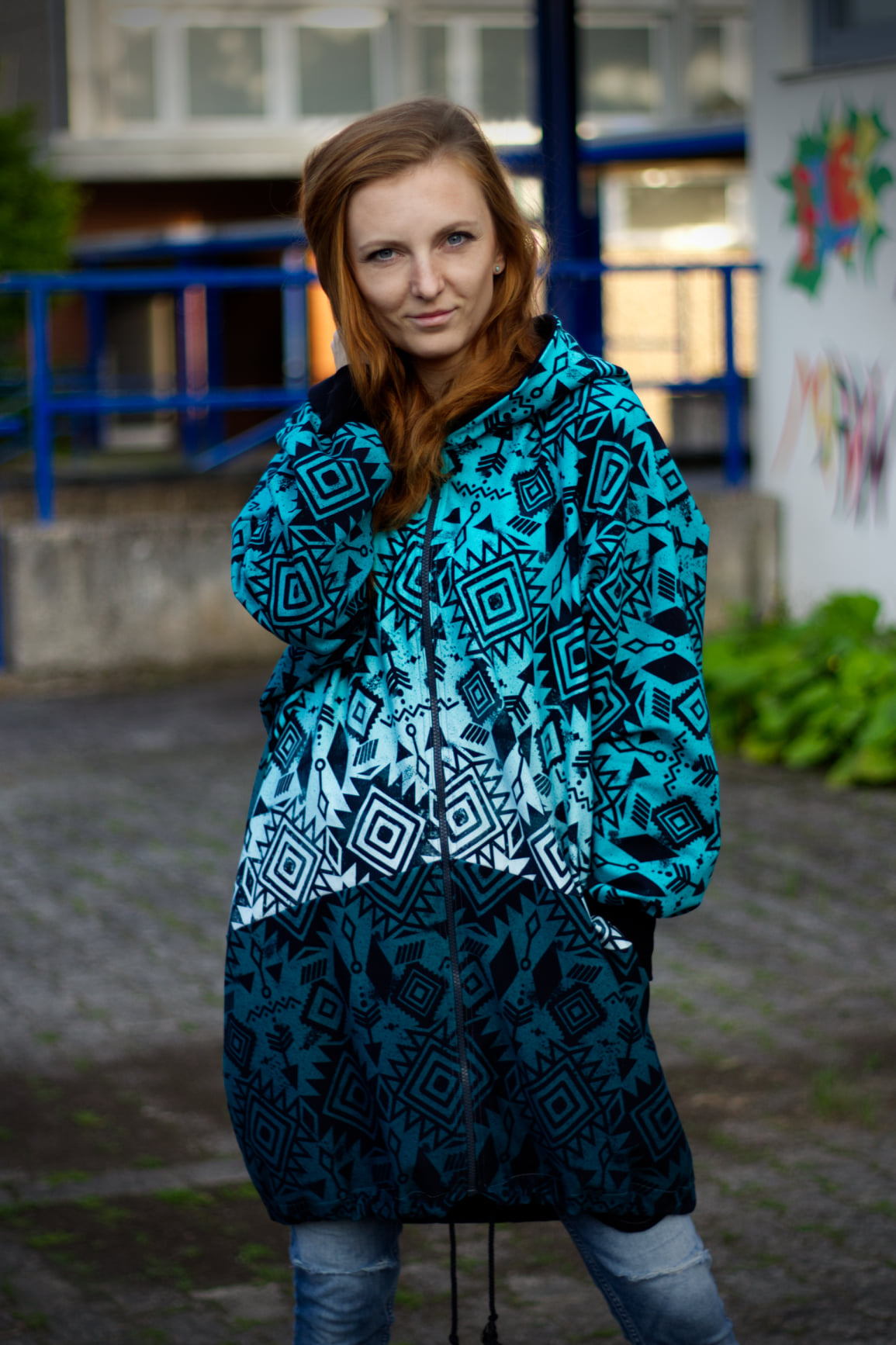 Preview: Reststück 120 cm, Bio Viskosejersey mit Überbreite: Eigenproduktion Spirit Bordüre von Graustufen-Stoffe